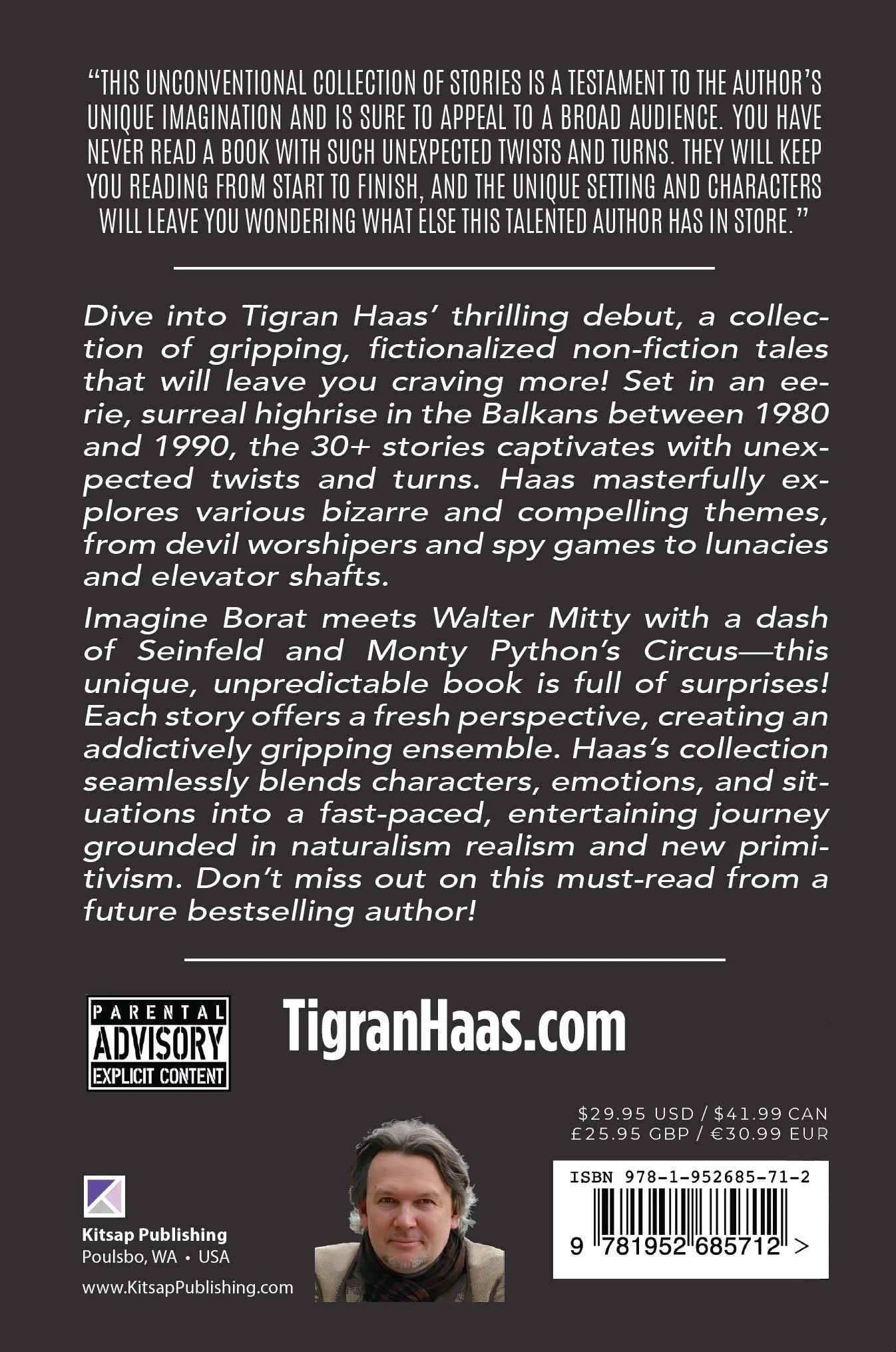 Tigran Haas' thrilling debut, a collection of gripping, fictionalized non-fiction tales that will leave you craving more! Set in an eerie, surreal highrise in the Balkans between 1980 and 1990, the 30+ stories captivates with unexpected twists and turns. Haas masterfully explores various bizarre and compelling themes, from devil worshipers and spy games to lunacies and elevator shafts.